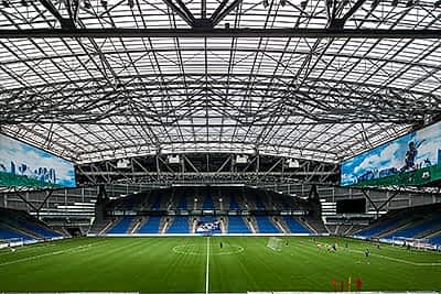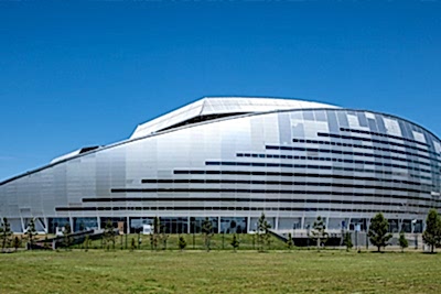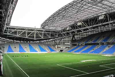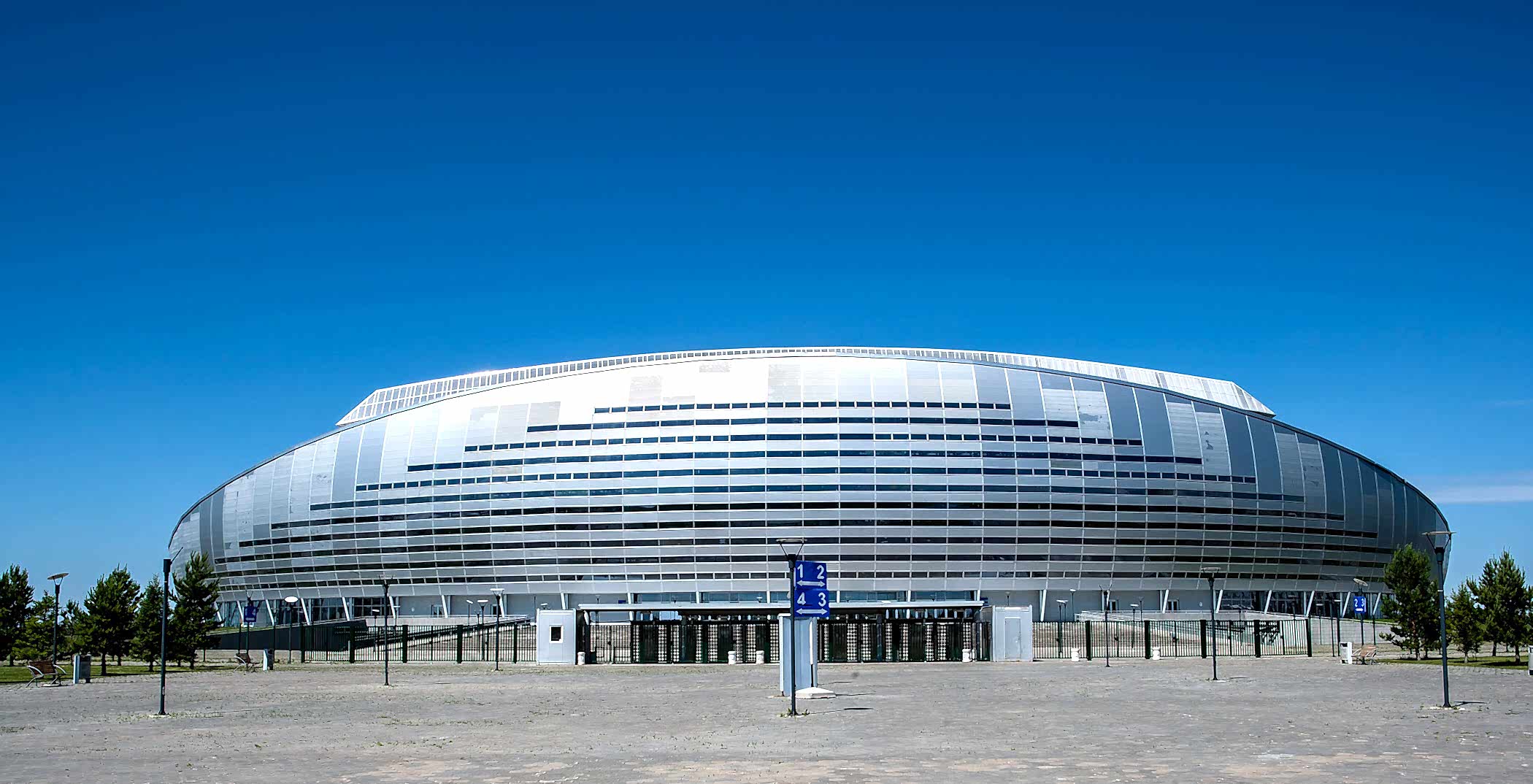 11.200 ton steel structure and retractable roof with travel and drive system. The design introduces innovative solutions adopting high technology principles for interaction with the harsh climatic conditions of the geography.