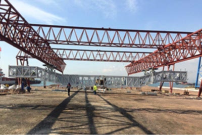 Engineering, design and fabrication of 50 ton/each self propelled gantries with 3 m/sec travel speed and cable carriage gantry for inspection works.